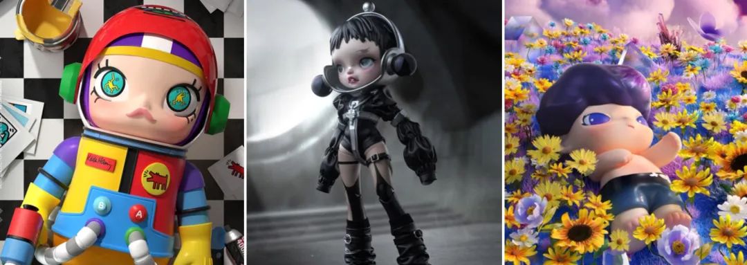 從左到右分別為Molly、SkullPanda、Dimoo