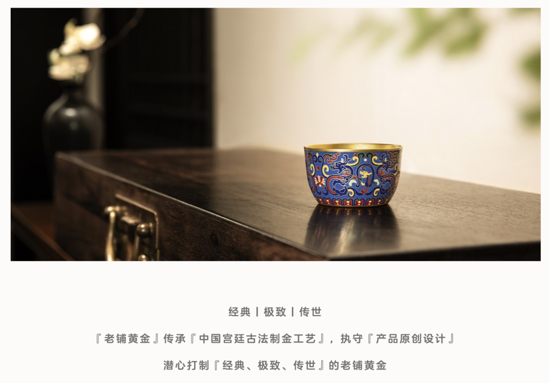 國家非物質文化遺產的古老鑄金工藝、專業匠人手工打造,**老鋪黃金用“古法黃金”的概念為消費者打造了一個“古法工藝+宮廷美學”的現代金飾夢,**讓人感覺買的並非只有黃金,而是黃金背後的傳統文化和傳統手藝。