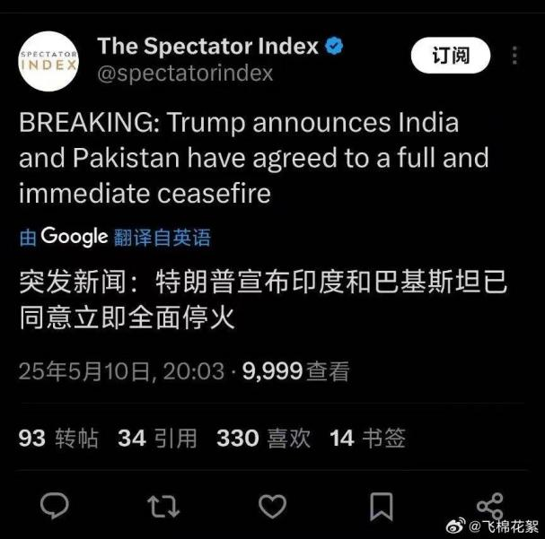 莫迪開了半天會,最後的決定被爆是尋求停火,然後向美國請求其作為停火中間人。然後特朗普宣佈印度和巴基斯坦已經同意立即全面停火。棉花絮表示還真的不是因為特朗普有多麼了不起,而是戰爭的鑰匙和主導權本來就在莫迪這邊,據説開會現場的大部分高級軍官都不想打,即使莫迪再想打也沒辦法做主。