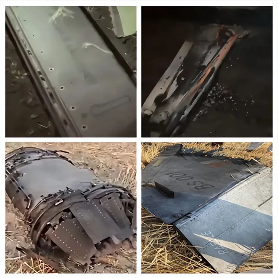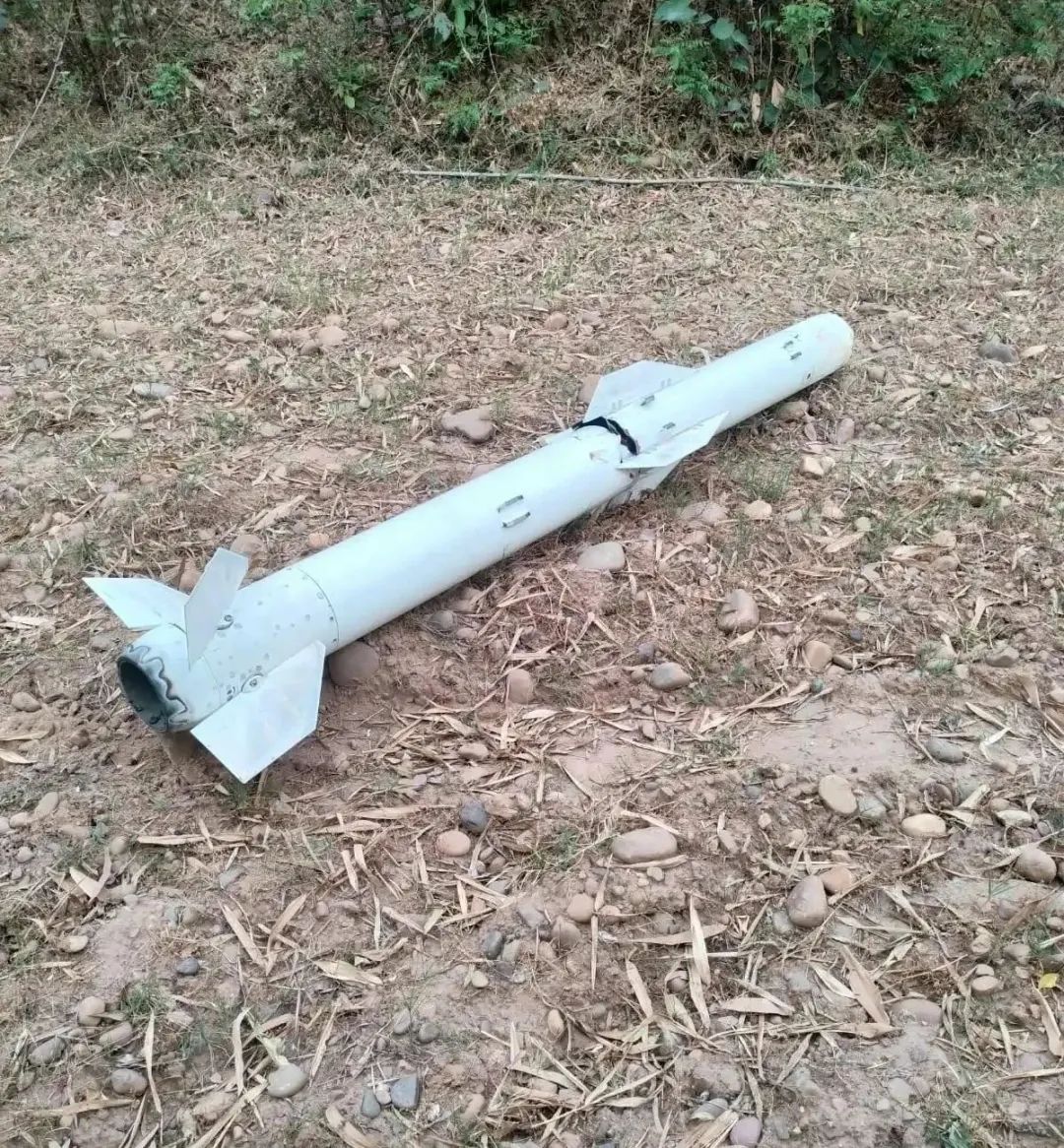 先是陣風被擊落的殘骸圖片,因為是大白天拍攝,垂尾編號、法文標識及發動機外形等等信息一清二楚,在戰機殘骸不遠處,就是中國霹靂-15E空空導彈的殘骸。