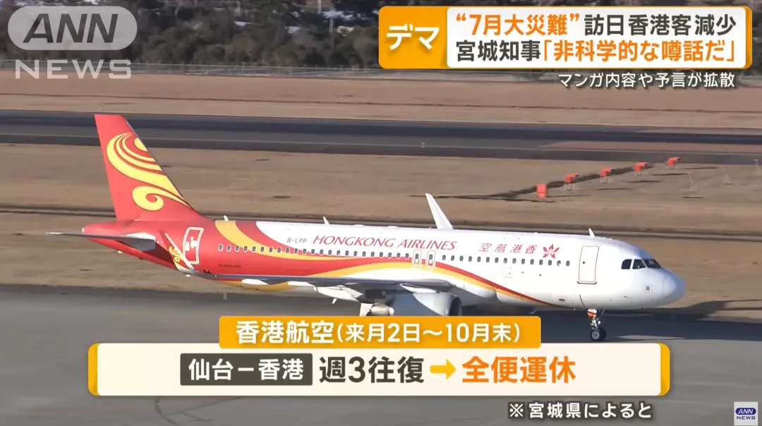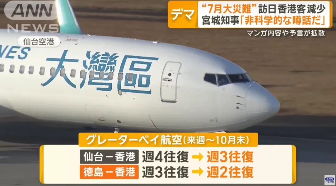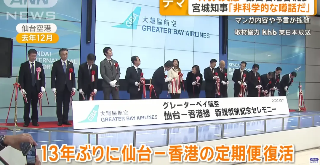 據悉,大灣區航空去年12月時隔13年剛剛恢復了連接仙台與香港的定期航班,如今卻面臨減班。