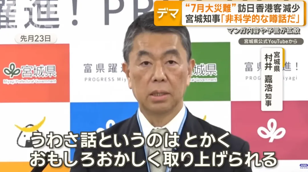 面對這一場“災難預言”風波,日本宮城縣知事村井嘉浩在4月23日的記者會上表示嚴重關切。他指出,這一事件的傳播依據極為非科學,卻已經對旅遊業造成了實質影響。