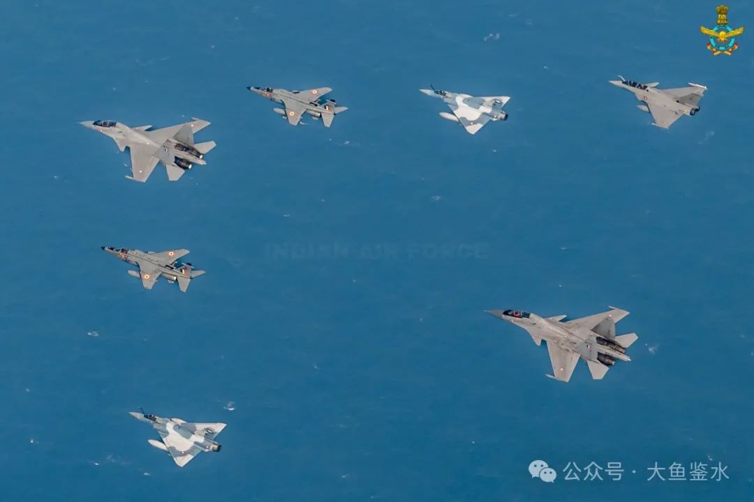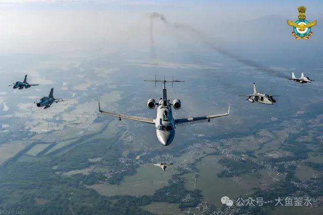 > 和R-99預警機編隊飛行的米格-29、美洲虎、蘇-30MKI、米格-21比斯和陣風,這其中和預警機數據鏈兼容的可能只有米格-29