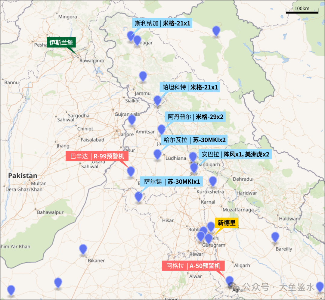 第200中隊的3架R-99預警機部署在巴辛達空軍基地,距離邊境70公里。3架A-50EI隸屬空軍中央司令部第50中隊,基地位於新德里東南180公里的阿格拉空軍基地,距離邊境500公里。