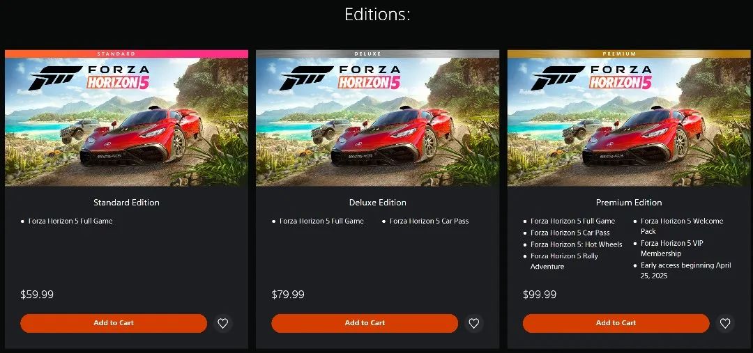 隨着地平線5在4月29日正式在PS5上線,風向倒是發生了明顯的變化——遊戲上架後在幾乎所有地區的暢銷榜登頂,根據多家分析公司的估算,PS版地平線5的首周銷量至少突破百萬份,且依照此前的預購榜排名來看,購買99.99美元“頂配版”的玩家反而是最多的,畢竟這個版本中包含所有的DLC、通行證和一些獎勵,售價相比要在Xbox或Steam平台上買齊這些划算不少。