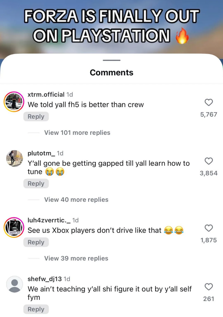 以當時的社羣反應來説,挺多Xbox用户聽見這消息是不太高興的——雖説地平線5在2021年就登上了PC平台,不算是Xbox的獨佔遊戲,但當年還是有很多駕駛遊戲愛好者是衝着這款遊戲,最終在兩款主機中選擇了Xbox的,現在多少有點遭遇“背刺”的感覺。