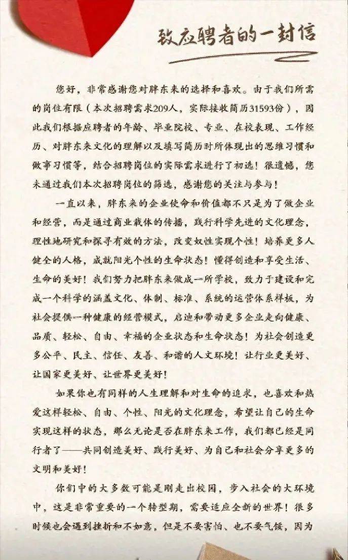 △胖東來致應聘者的一封信