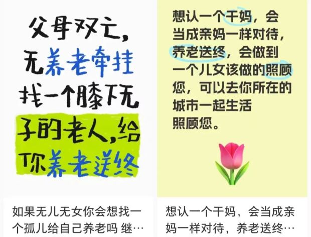 最近,“認乾媽,為你養老送終”之類的帖子在社交平台頻繁刷屏。
