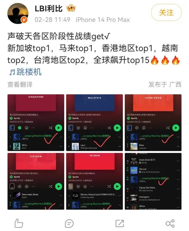 截至當下,《跳樓機》已在QQ音樂、網易雲雙平台收穫超過1000萬收藏量,其中QQ音樂熱歌榜在榜137期,剛剛跟薛之謙的《無數》《崇拜》一起達成了騰訊音樂榜認證的雙白金認證;在新加坡、馬來西亞、泰國等東南亞市場和港台地區也是一路高歌猛進。