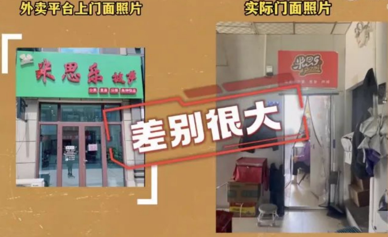 例如,一家名為“米思樂披薩意麪店”的店鋪,在京東外賣平台上展示的是寬敞明亮的堂食環境,桌椅整齊擺放,而實際探訪時,卻發現它位於一個隱蔽的小巷子裏,店面破舊,僅能容納幾名員工操作,所謂的堂食區域根本不存在。