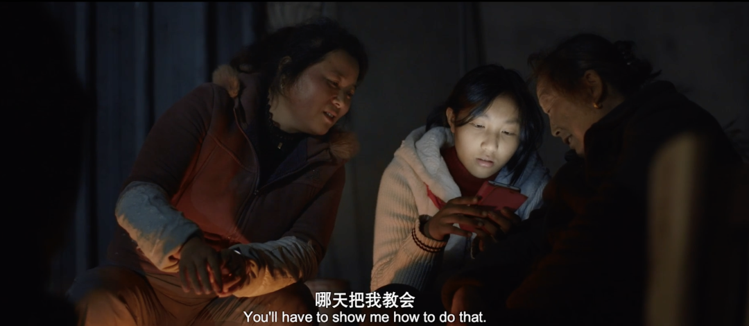 某天夜裏,一家人在院子圍坐烤火。冉冉蜷在奶奶懷裏玩手機,高姐試探着靠近,女兒卻下意識側身遮擋屏幕。