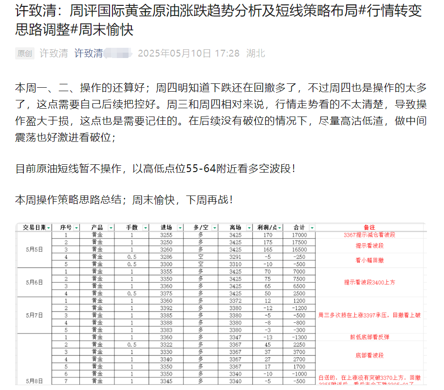 許致清:5.12-13國際黃金原油漲跌走勢分析及獨家短線佈局建議_風聞