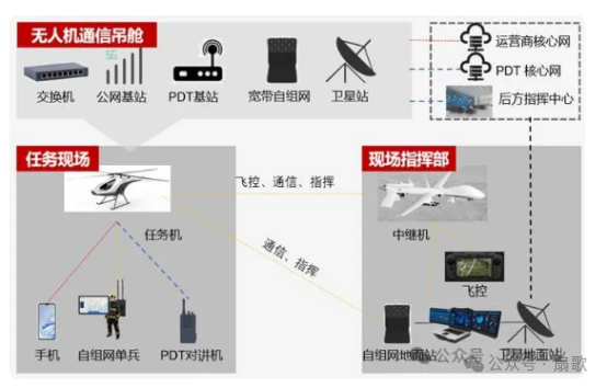 超視距空地協同視頻指揮通信系統基於無線寬帶通信技術、無人機飛控、高清視頻遠距離傳輸、去中心化調度算法的可視指揮通信系統。