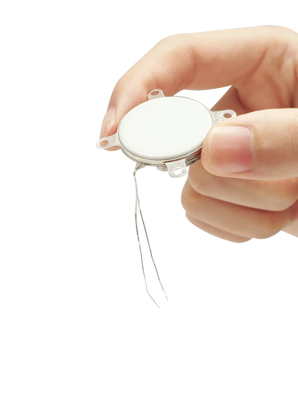 植入體直徑26mm、厚度不到6mm,是全球最小尺寸的腦控植入體,僅硬幣大小。埋入大腦的部分在電極尖端,肉眼難以分辨。階梯醫療供圖。