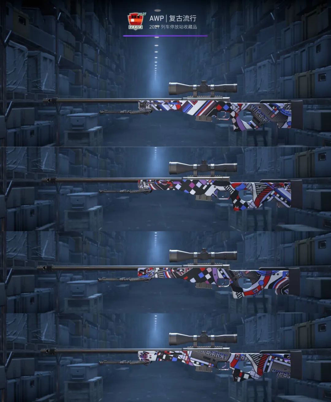 遊戲裏看着像油漆刷上去的一樣。花紋不固定,帶一定的重複性和隨機性,比如下面這些同樣都是【AWP | 復古流行】,很明顯不一樣。