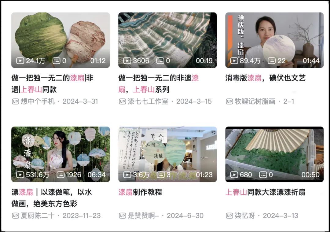 當時很多手工UP主也紛紛推出過《上春山》同款漆扇的製作視頻,挺賞心悦目的。
