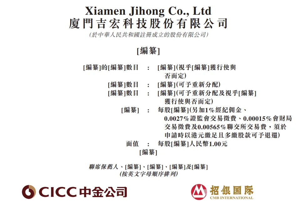 據港交所5月8日披露,廈門吉宏科技股份有限公司通過港交所主板上市聆訊,中金公司、招銀國際為聯席保薦人。截至5月8日收盤,吉宏股份(002803.SZ)報14.12元/股,市值54.33億元。