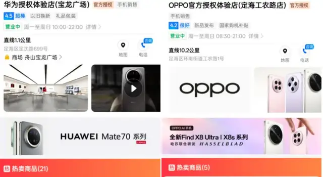 按照OPPO中國區總裁劉波的説法,OPPO正在通過這場變革,將線下渠道轉變為“以用户為中心”。但相比友商還是在速度上稍遜一籌,更進一步講,一旦好位置被其它廠商搶佔,後續品牌要想再進入,優勢將被大打折扣,這一點,從地圖上隨機展示出的體驗店形象頁面即可看出。