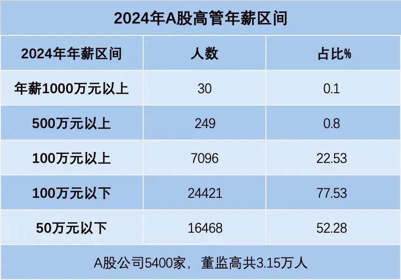 去年A股5400家公司,3萬多名高管(董事級別以上),僅有30人年薪在1000萬元以上。