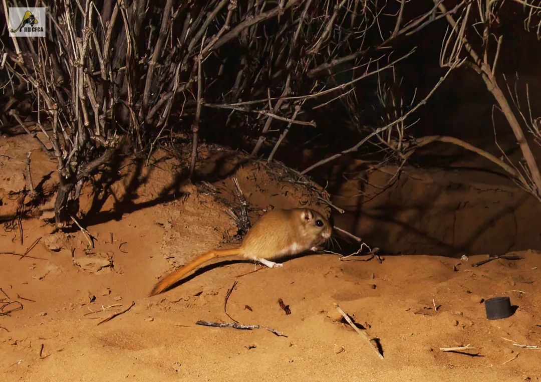 貓盟發現兔猻的地方位於沙漠的邊緣,從幾十年前人們便在這裏防沙治沙,如今這裏生長着大片的人工梭梭林,這些梭梭帶來了一個附加效果,就是這裏的沙鼠特別多。當年我們的車停在沙漠裏,我在車裏啃饢,車窗外一隻大沙鼠就蹲在洞口吸溜着一根鮮嫩的梭梭枝。