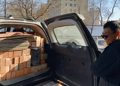 最終,大哈弗裏裝了木板、磚頭、鏟子鋸子鋤頭、電鋸電鑽、水泥(放在車上備用),還有一桶自來水,這桶水實在放不下了只能塞到副駕駛李琦的兩腿中間。