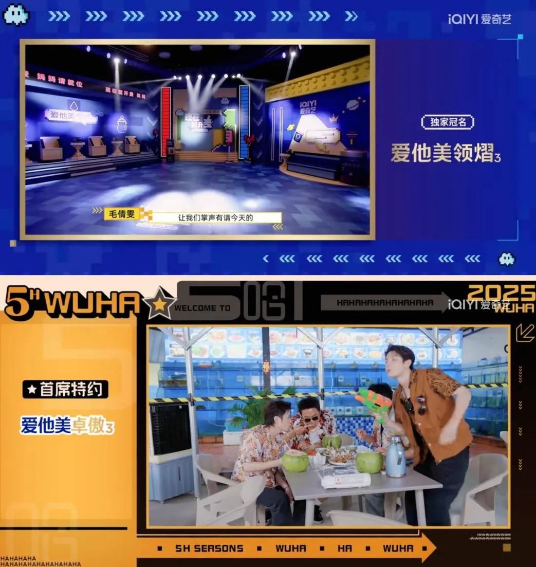 在拼單模式之下,一般會給客户打包幾檔綜藝節目,節目體量有大有小,客户身份席位也不相同。比如愛他美在“五哈5”中為首席特約,但在《現在就開麥》這檔小體量節目中就為冠名(且為愛他美定製項目)。
