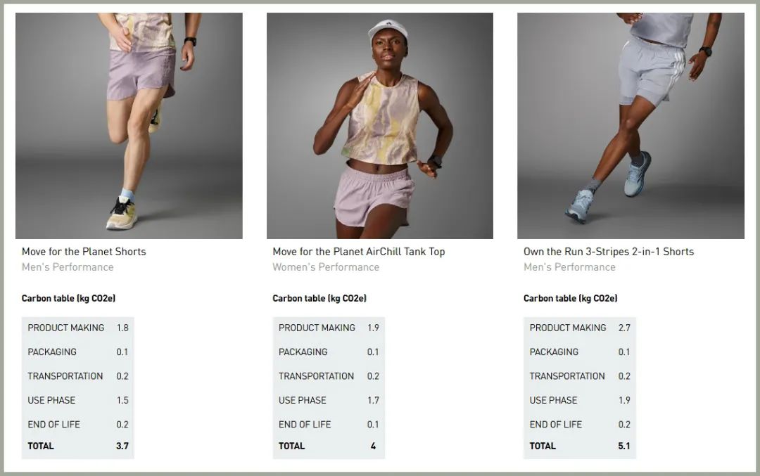 一些運動品牌為服裝產品標註了其從生產、包裝、運輸到使用、丟棄等各個環節中會產生的二氧化碳當量▼