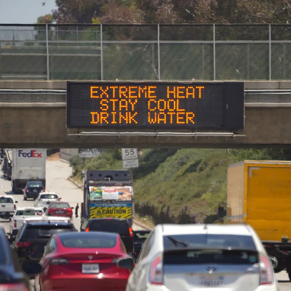 (圖:美國高速公路上的顯示牌提醒人們在極端高温天氣下注意飲水和乘涼,壹圖網)▼