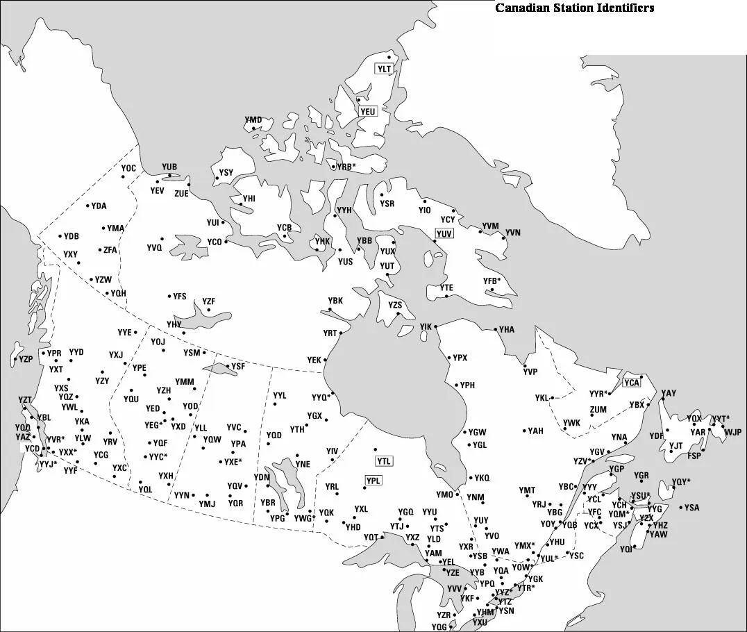 到了上世紀60年代IATA在全球推行三字代碼時,加拿大便直接採用了“有無氣象塔+車站電報代碼/無線電信標”的格式。
