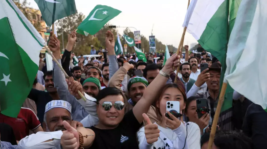 人們在伊斯蘭堡舉起巴基斯坦國旗慶祝印度和巴基斯坦達成停火的協議。(圖源:路透社)