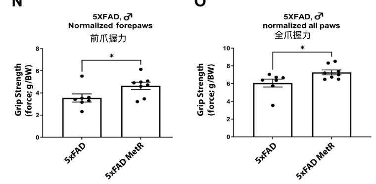 圖注:MetR改善阿爾茲海默症小鼠握力