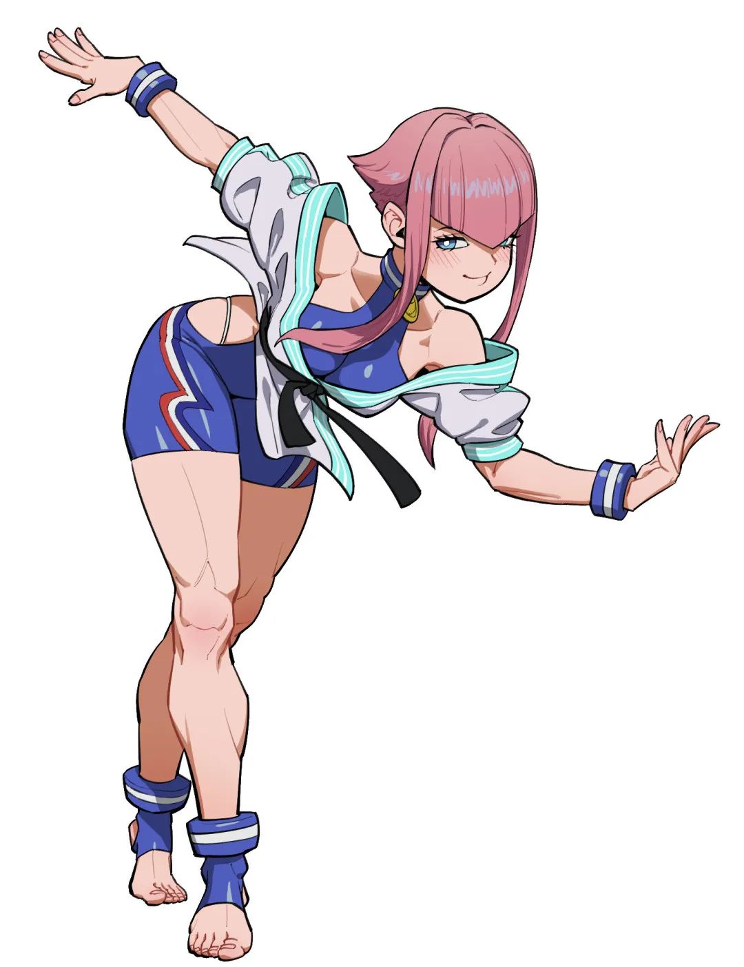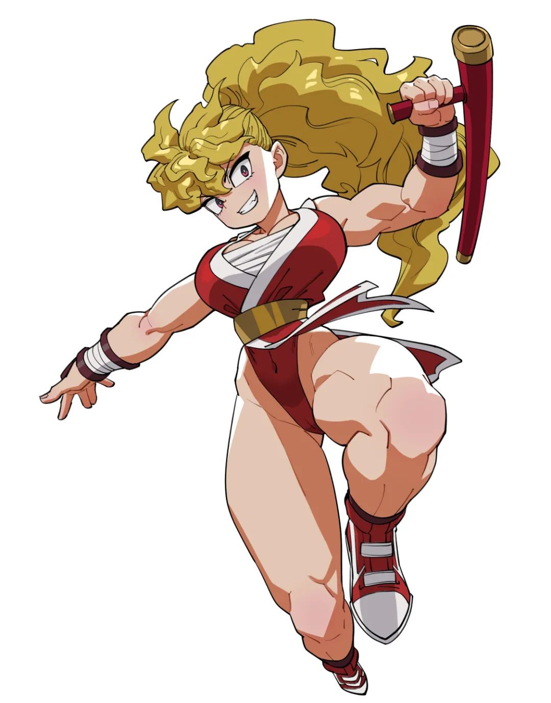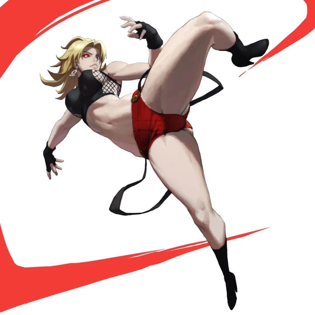角色的動態感強烈,經常採用扭轉軀幹的大幅度動作增強視覺衝擊力。緊實的肌肉好似隨時都要爆裂,姿態甚至誇張到違揹人體定律。
