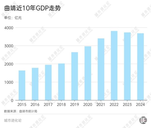 作為在雲南省內經濟體量僅次於昆明的副中心城市,曲靖GDP已連續兩年(2024和2023)下降,甚至2024年實際增速也為負。