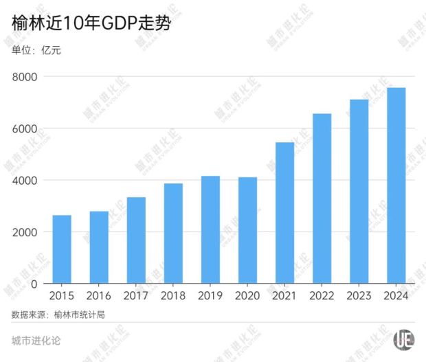能源價格時常波動,導致榆林GDP變化差異大。例如2020年其GDP數值仍在下降,但2021年由於煤炭價格走強,當年GDP名義增速高達33%。