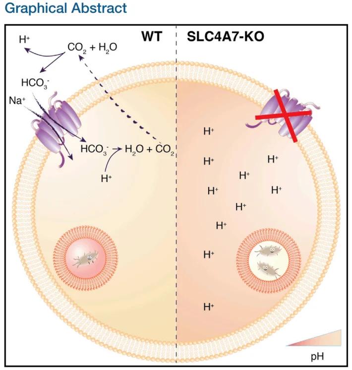 研究人員利用CRISPR/Cas9系統敲除THP-1中的SLC4A7基因(負責碳酸氫鹽轉運),結果顯示該基因缺失使得吞噬體pH升高,從而顯著降低其殺菌效率。補償實驗進一步確認SLC4A7是維持吞噬體酸性環境的關鍵分子。