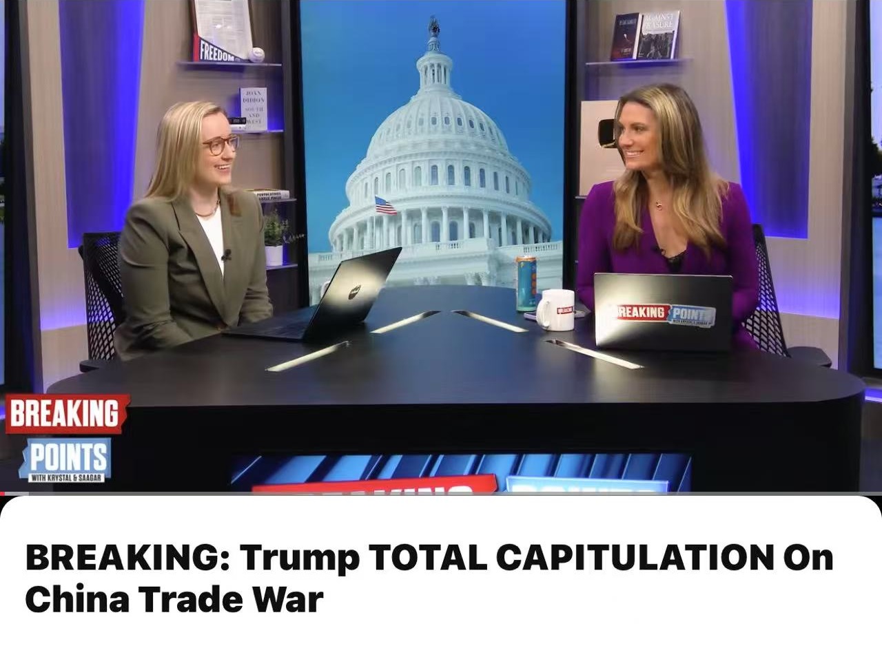 美國的主流媒體都在嘲諷特朗普,第一,認為中國沒有做實質性讓步,特朗普是投降了。第二,認為特朗普這場關税戰打得毫無章法。諸如向全世界開戰就是亂來。而偏向共和黨的媒體標題就更有意思了,它用的是疑問句,中美協議對特朗普究竟是勝利還是投降?結論是不是投降,雖然他們也承認亂象倍出,可是最終能夠達到的結論是正確的,就是在關鍵產業與中國脱鈎,而不是全面地脱鈎,譬如在醫療產業、在國防工業、在芯片產業、……