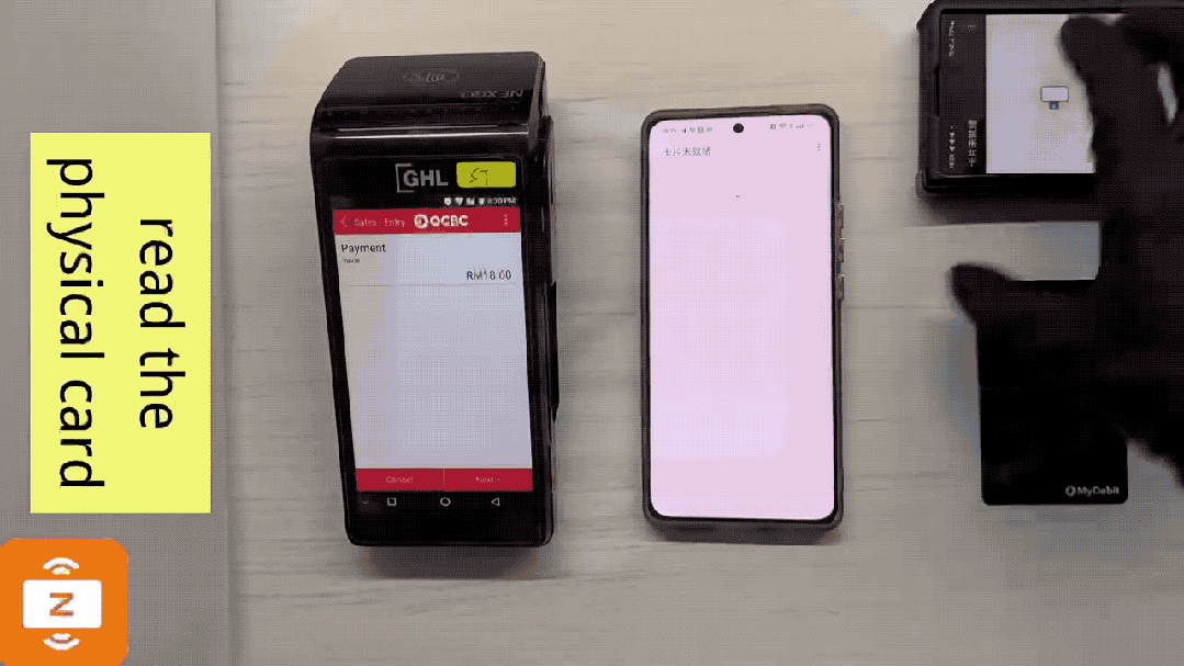 一台手機貼住實體的銀行卡,另一台手機就能直接把這張銀行卡 “隔空” 複製出來,全程並不需要輸入密碼,還能代替實體銀行卡刷卡成功。
