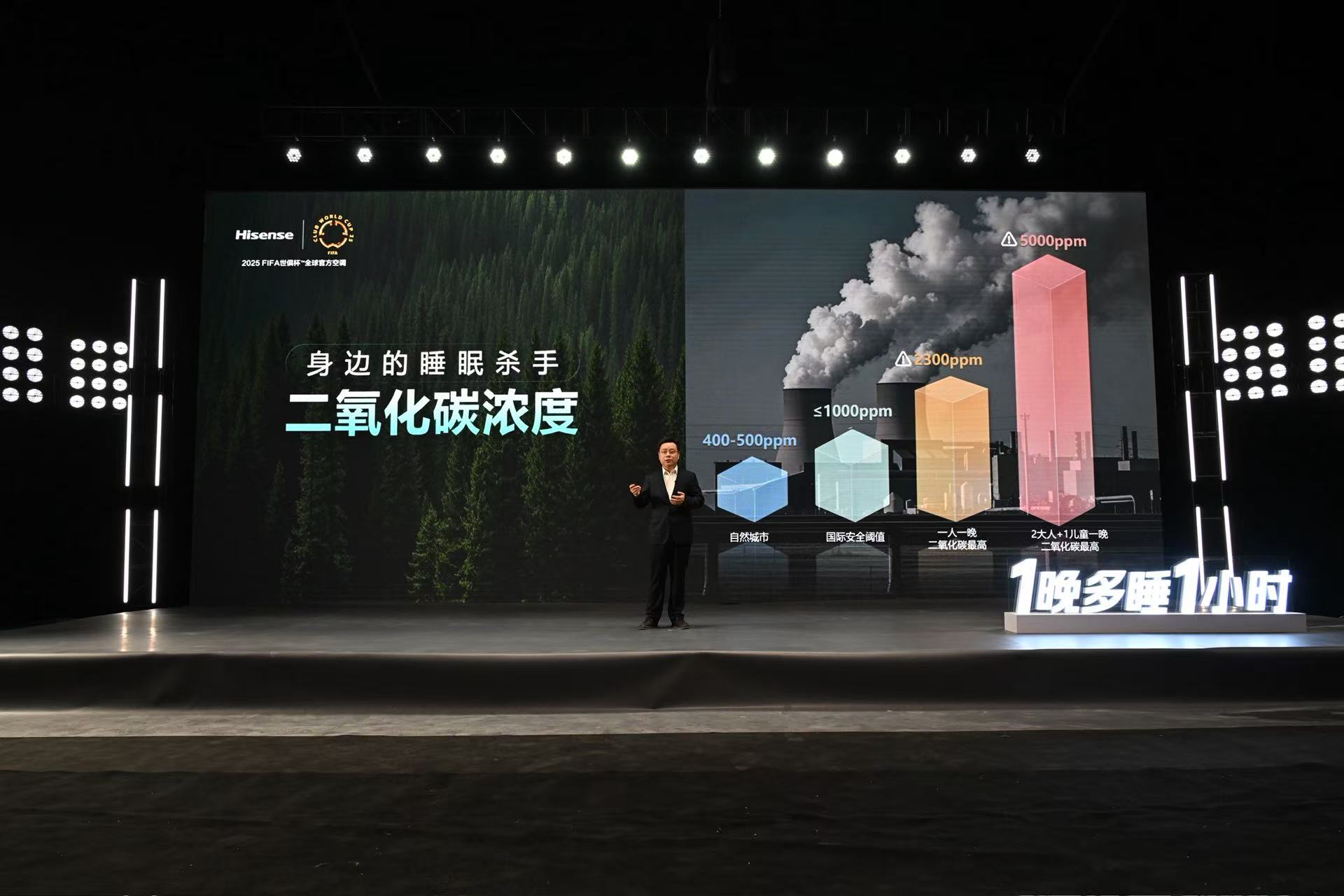 5月12日,中國睡眠研究會、中國環境科學學會等多個專業機構共同發佈的《新風空調助眠白皮書》就用臨牀數據證明:新風空調可通過高效降低CO₂(二氧化碳)、TVOC(可理解為室內空氣污染物)濃度改善睡眠環境,實現“7小時睡眠抵8小時”的效果,真正讓用户“1晚多睡1小時”。