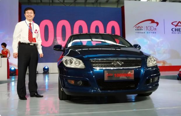● 尹同躍和奇瑞的第100萬輛汽車。圖片來源:奇瑞官網