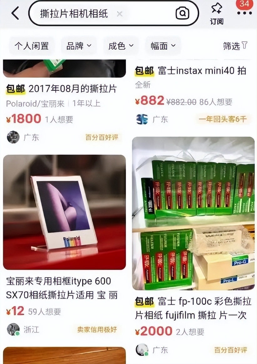 這也就意味着,目前市面上受人追捧的撕拉片相紙不僅僅是“過期庫存貨”,消費者想要購買也只能從“二手商人”等非官方銷售渠道中入手。即便如此,因明星同款而走紅的撕拉片還是被人們賦予了“拍一張少一張”的商業噱頭,最終在物以稀為貴這句經商公式的加成下身價一路水漲船高。