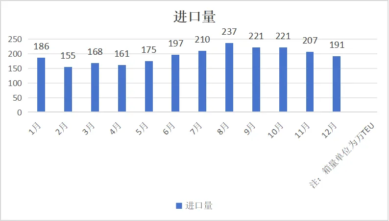 2024年同期,美國從中國進口集裝箱箱量約為275.45萬TEU;