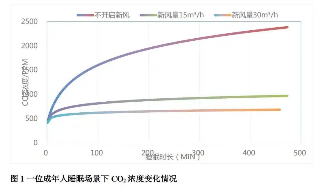 根據海信發佈的《新風空調助眠白皮書》來看,室內二氧化碳的濃度會不同程度影響人的睡眠質量,而在常見卧式面積且正常關門關窗的密閉環境裏,不借助外力想要將二氧化碳控制在國際安全閾值(≤1000ppm)以內,幾乎是一件難以實現的事情。