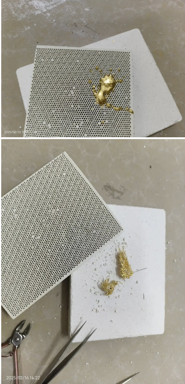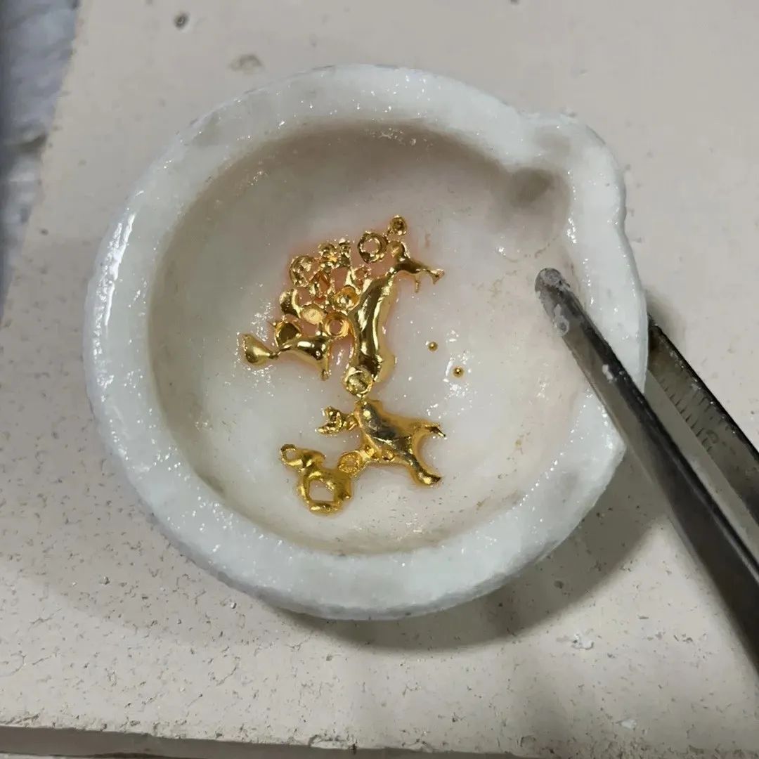 火燒+硼砂,不然石英碗很容易將金子“吞掉”。