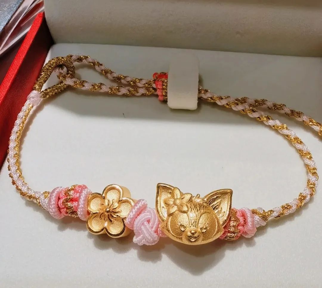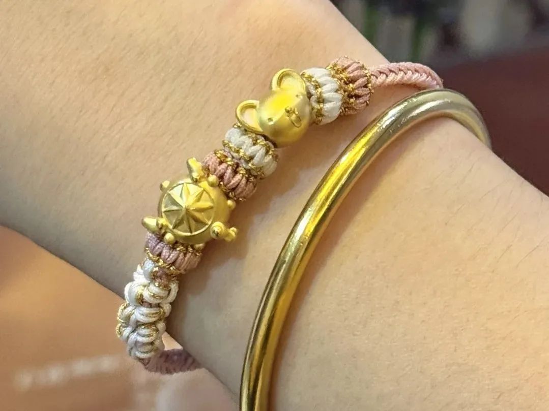 金飾的“頂流”玲娜貝兒,加上粉金的編織搭配,足夠年輕、足夠時尚。