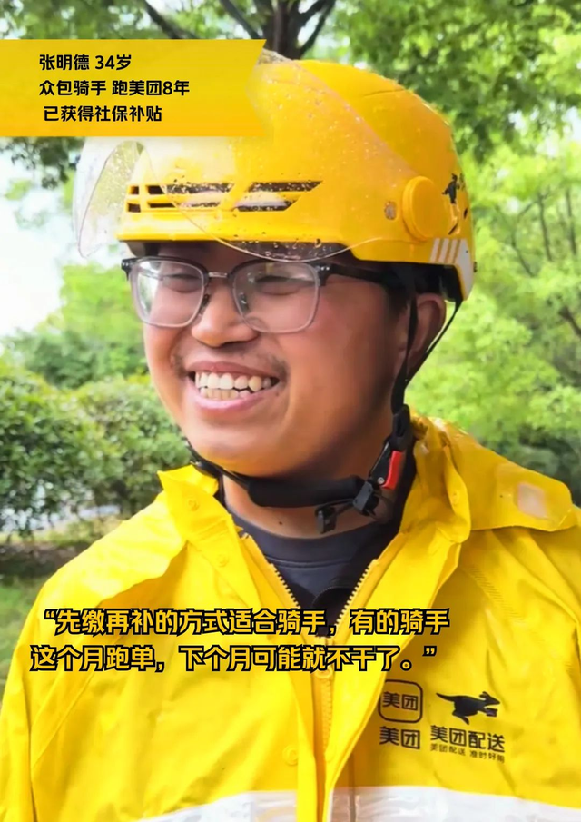 也就是,先自己繳納社保,之後平台再給予補貼,這種方式比平台代扣代繳更符合騎手的需求。
