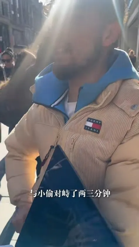 就這樣,三個人一邊盯死了他,一邊等着警察到來,途中還有一個男子過來想要把小偷救走,不過馬上就被波比識破了:這人就是小偷的同夥,還在這裝無辜呢。