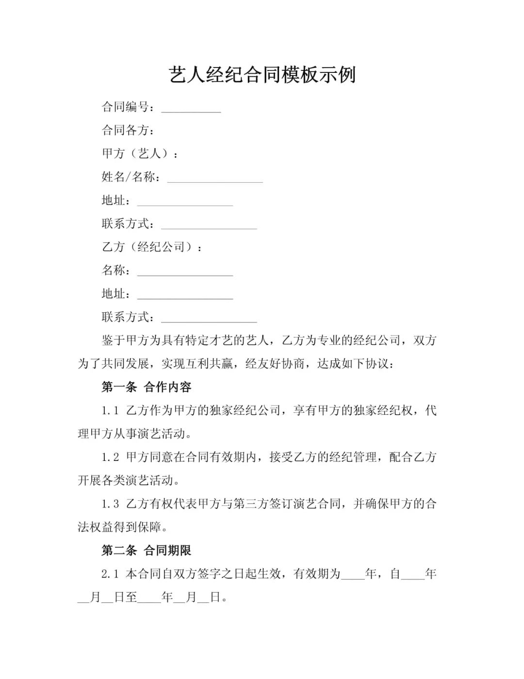 經紀合同模版,但是也不是很保險