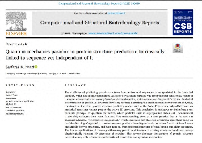 這篇題為《蛋白質結構預測中的量子力學悖論:與序列有內在聯繫,但又獨立於序列》的論文4月9日發表於國際期刊Computational and Structural Biotechnology Reports(Computational and Structural Biotechnology Journal的姐妹刊)。