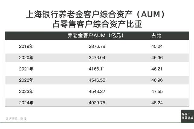 而在過去數年裏,養老金客户綜合資產(AUM)佔據零售客户綜合資產的比例也一直在45%以上,與存款比例基本持平。
