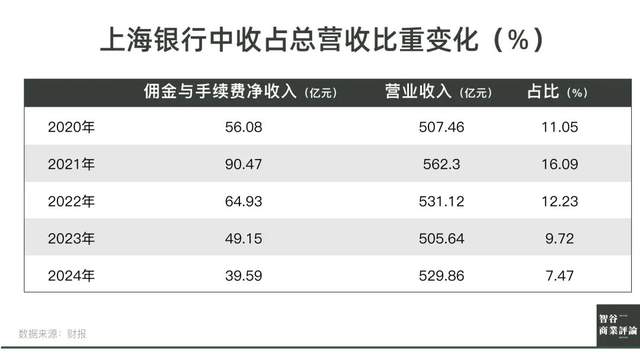 但數據上卻呈現截然相反的結果,從2022年開始,上海銀行的中收佔比顯著走低。